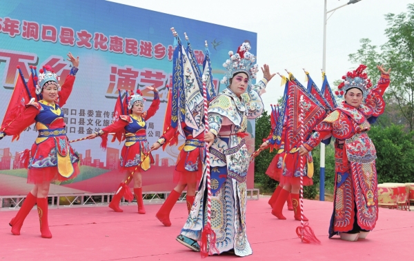 10月5日,洞口县南泥园艺场,演员在表演文艺节目。国庆中秋假期,该县组织文艺工作者深入乡村开展送戏下乡演出活动,丰富群众假期文化生活。滕治中 摄(湖南图片库)