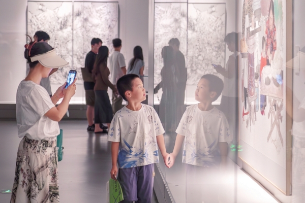 10月5日,游客在湖南美术馆参观。国庆中秋假期,不少市民和游客选择到访各类博物馆、美术馆,在文化的浸润中度过假期。湖南日报全媒体记者 童臻熙 摄