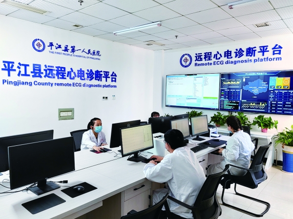 在平江的医共体建设中,数字化成为重要赋能力量。平江县第一人民医院远程心电中心“一网通联”让救治“快起来”,不仅覆盖了24家乡镇卫生院,而且和全县450个村卫生室的健康一体机实现了互联互通。