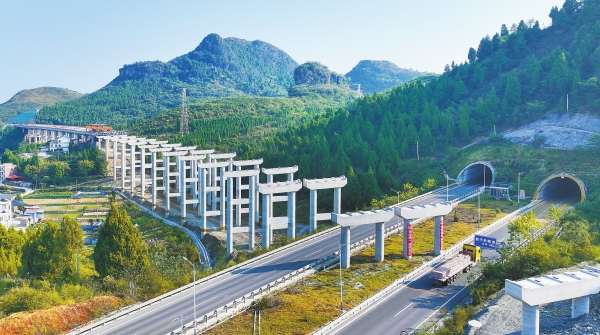 10月17日,新田县龙泉街道石甑源村,建设中的桂(东)新(田)高速公路。桂新高速公路是省“十四五”重点项目,建成后将显著改善湘南山区交通基础设施条件,为沿线地区乡村旅游开发和农业产业升级提供强有力的交通支撑。