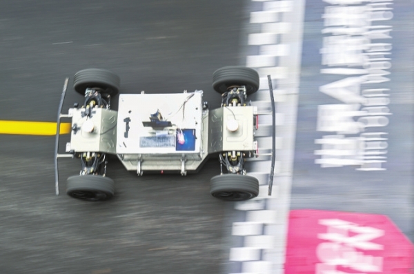 10月17日,武汉理工大学智驭战队的赛车在赛道上进行比赛。