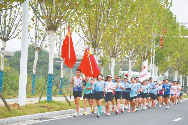 国庆期间,永州市冷水滩、零陵两区跑步爱好者开展跨区联跑活动。 冷水滩区长跑协会供图