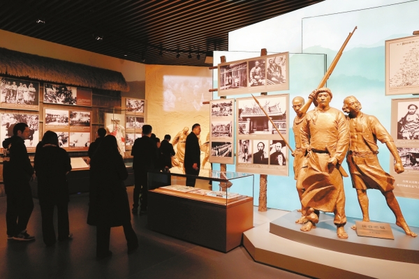 10月25日,为纪念台湾光复80周年,《不屈的宝岛 丹心向祖国——台湾同胞抗日史实展》在中国人民抗日战争纪念馆开幕。展览共展出珍贵历史图片387张、文物453件,全景式再现了台湾同胞反抗日本殖民统治长达50年英勇不屈斗争的光辉历史。图为当日,参观者在纪念馆参观。新华社 发