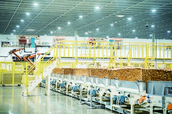 走进浏阳天福复烤厂,生产车间集控中心室的高清屏上,实时显示着全配方片烟预处理生产加工现场全貌。现场工作人员告诉我们,“来自各地的芙蓉王原料烟叶在这里进行预处理,确保产品风味的一致性。”