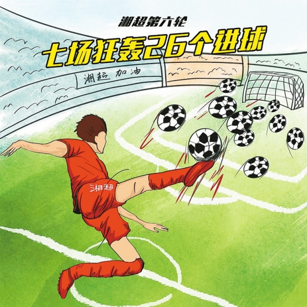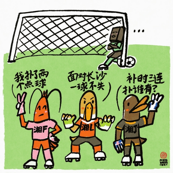 2025年湖南省足球联赛(简称“湘超联赛”)正在火热进行中,这是草根足球的盛大舞台,也是全民狂欢的超级秀场,绿茵场内外,激情与热梗齐飞。湖南日报联合湖南省美术家协会漫画艺委会开设《漫画湘超》栏目,邀请广大漫画创作者于方寸之间定格球员高光时刻,记录球迷呐喊,收藏每一个为足球沸腾的瞬间,近期收到了省内外众多漫画爱好者的积极投稿,特开此刊,以飨读者。