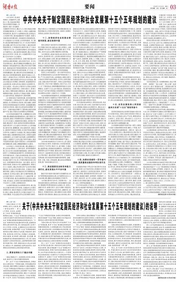 关于《中共中央关于制定国民经济和社会发展第十五个五年规划的建议》的说明