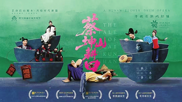 田间地头的山歌融入戏曲锣鼓,憨厚的农民故事被久久传唱,花鼓戏《蔡坤山耕田》是一坛陈酿,既保留着传统戏曲的醇厚底色,又焕发出直击人心、尽显时代锋芒的艺术魅力。这部脱胎于传统民间小戏的作品,经多年打磨扩展为“遇饭”“过堂”“散财”“耕田”“施粥”“恩赐”六场戏。从祖辈口中的朴素传说到舞台上扎着“冲天炮”的蔡坤山,从家长里短的叙事格局拓展到融合声光电的现代演绎,寻常农民的一碗热饭,竟意外救助了落难的正德皇帝,这“一饭之恩”引出的传奇,动人心魄。
