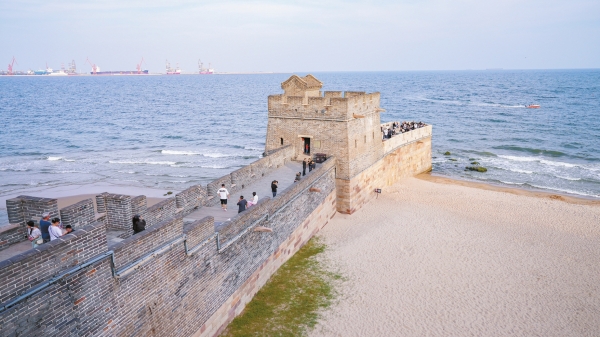登上山海关城楼,极目远眺:北有燕山,连绵起伏;南临渤海,碧波浩渺。山与海在此轰然交汇,构成一道天然的屏障,也让人瞬间领会到“山海关”地名的精妙。