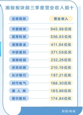 日前,上市公司三季报披露截止。湘股前三季度“战报”中,谁成为营收大户?谁成为盈利“榜一”?投资者回报又如何?