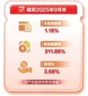 盈利水平的逆势提升更显经营功力。前三季度,该行营收和净利双双增长,尤其是利润增速大幅高于营收增速,呈现出“营收稳增、利润快增”的良好态势。