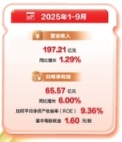 前三季度营业总收入197.21亿元,归母净利润65.57亿元,分别同比增长1.29%、6%。