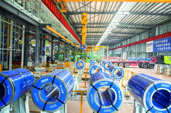 11月1日,位于娄底“材料谷”的涟钢热轧板厂里热气升腾,1580热连轧生产线上,火红的钢坯迅速“驶”过一个个加工设备,冷却后成为一卷卷钢材。钢材很快被转运至毗邻的硅钢产业园、电机产业园,进而加工成硅钢及“三电”等产品。