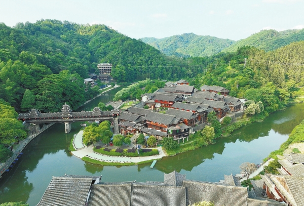 群山环抱,一座秀丽的村寨静卧在山谷中。