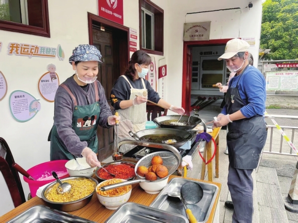 七斗冲社区长者食堂开办后,居民积极参与食堂运营。“灯盏窝是沅陵传统美食,食堂头一天晚上就开始准备,社区老人也带着家里的厨具来帮忙,指导食堂师傅烹制。”苗族大姐向梅说,这一口油炸小吃,勾起了她的童年回忆。