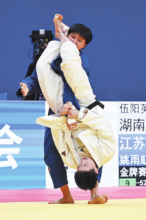 她是全运会女子柔道52公斤级的卫冕冠军,但她也是一名36岁的老将。从11月10日上午开始,湖南选手伍阳英连胜香港选手徐淑琪、山东选手朱叶青、辽宁选手范鑫,直至半决赛再胜云南的刘应薇。