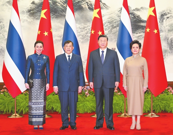 习近平指出,中共二十届四中全会审议通过“十五五”规划建议,将聚焦推动高质量发展,扩大高水平开放。泰国也处在国家发展振兴的关键阶段。中方愿同泰方加强战略对接,稳步推进中泰铁路等大项目合作,扩大进口泰国优质农产品,拓展人工智能、数字经济、航空航天等新兴领域合作,让两国人民从中泰合作中获得更多实利。要推动两国文化交融,促进人文交流,让两国民众越走越亲。中方愿积极支持泰国王室公益项目,加强减贫经验交流,助力泰国改善民生。
