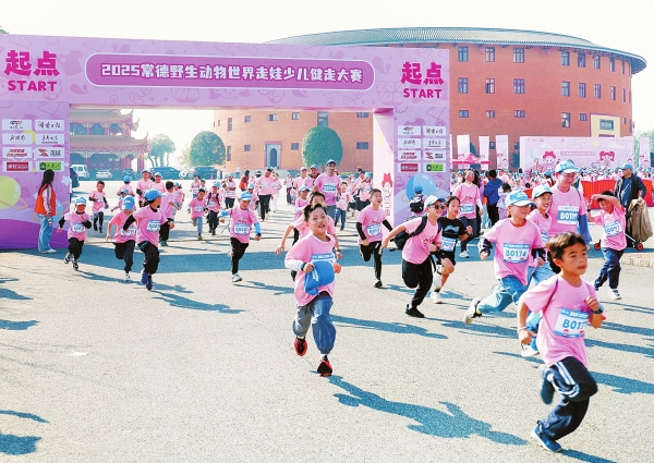 湖南日报11月16日讯(全媒体记者 李杰 通讯员 陈勇)今天,2025常德野生动物世界走娃少儿健走大赛开赛。来自长沙、张家界、常德、益阳、湘西州等11个市州的近1000组家庭、2500多名参赛者,穿行在动物王国里。常德市武陵区高铭宇、长沙市雨花区刘若呈、张家界市慈利县蒋析严分别获得少将组、中将组、大将组冠军。