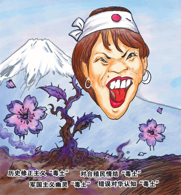 其一,历史修正主义“毒土”。高市步入政坛以来,就以历史修正主义“旗手”扬名。质疑“村山谈话”,否认南京大屠杀,参拜靖国神社……在此歪曲历史认知的延长线上,高市对台湾问题背后沉重的中日近代惨痛历史无感,对日本在台湾殖民统治期间犯下的累累罪行无感,对14亿中国人民对台湾问题不容外力插手的决心无感。