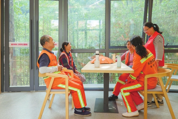 作为“泉管家”队伍的中坚力量,环卫工人一直备受关注。初冬微寒,环卫工人柳金霞清扫完天华公园的落叶,推开工会驿站的门,进来喝水休憩。在这个两层小楼里,功能设施一应俱全,成了环卫工人们的“暖心站”。