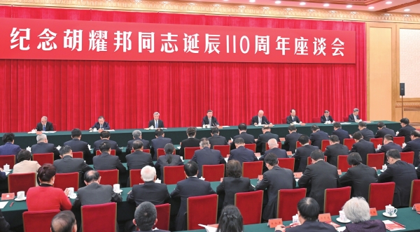 新华社北京11月20日电 中共中央20日上午在人民大会堂举行座谈会,纪念胡耀邦同志诞辰110周年。中共中央总书记、国家主席、中央军委主席习近平发表重要讲话强调,要认真学习胡耀邦同志的崇高精神风范和优良作风,不忘初心、牢记使命,坚定历史自信,增强历史主动,以一往无前的奋斗姿态扎实推进各项事业。