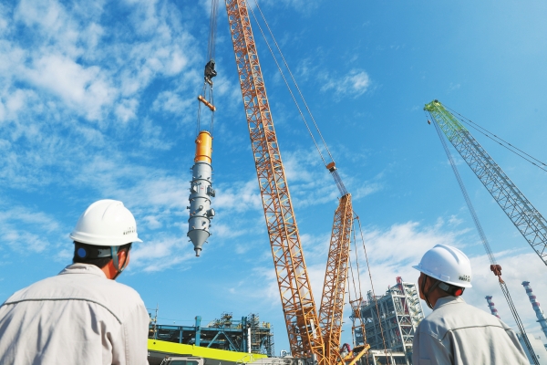 11月24日,湖南石化生物质气化柔性平台建设项目首台重达95吨的大件设备转化炉,成功吊装就位。目前,该项目钢结构已完成80%,预计12月5日前实现气化框架封顶。