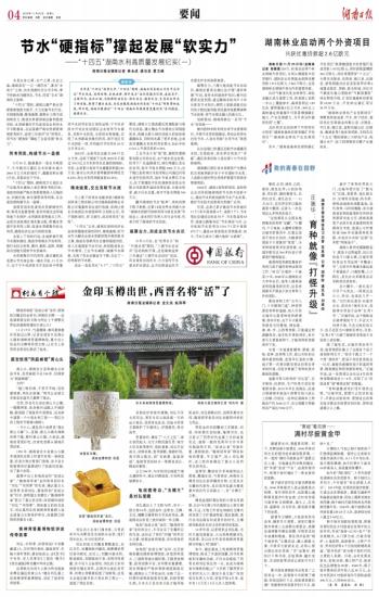 2024年,湖南6家科研院校、高校和企业共同组建湖南省节水技术创新中心,推动节水科技创新和节水产业发展,做好节水技术成果转化和推广应用。