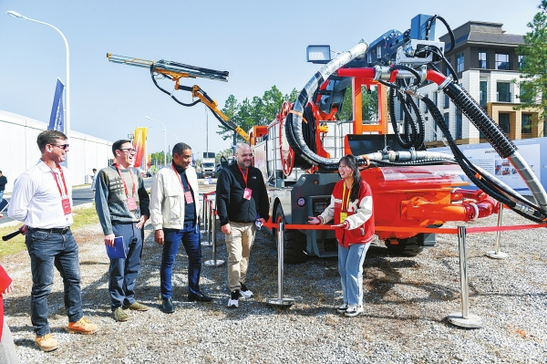 11月27日,外国客商在博览会上与参展企业洽谈采购事宜。当天,第三届湖南省先进制造新材料博览会在娄底经开区电力科技谷开幕。本届博览会以“制造新‘湘’材 链动新未来”为主题,为期3天,设置钢铁新材、硅钢—三电—钛材、智能制造与工程机械、农业机械及新材料综合领域五大展区,吸引237家企业携“拳头产品”亮相。(相关报道见5版)