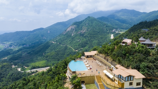 森林康养中心为游客提供“恒湿、恒温、恒氧、恒净、恒音”的极致舒适住宿体验;生态泳池引山泉水,铺设超百吨原石,四周绿树环抱,尽享山野间的清凉与宁静;竹林镜面艺术空间采用玻璃幕墙折射竹林景致,融合现代艺术与自然韵味,是禅修、音疗、瑜伽等多功能疗愈场域……在“云由紫金天境”,每一处景致都在诉说着自然与人文的和谐共生。