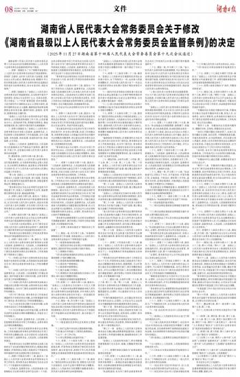 湖南省人民代表大会常务委员会关于修改《湖南省县级以上人民代表大会常务委员会监督条例》的决定