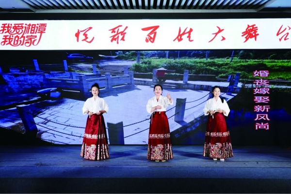 今年5月以来,湘潭县创新推出“我爱湘潭我的家——悦歌百姓大舞台”群众性精神文明建设主题活动,全民唱歌比赛、花鼓戏、村规民约小品、禁毒宣传等多种形式的演出精彩亮相,成为群众喜闻乐见的文化品牌。据统计,该县开展专场活动50余场,覆盖22个村(社区),线下累计观众超8万人次,线上直播总观看量超150万人次。