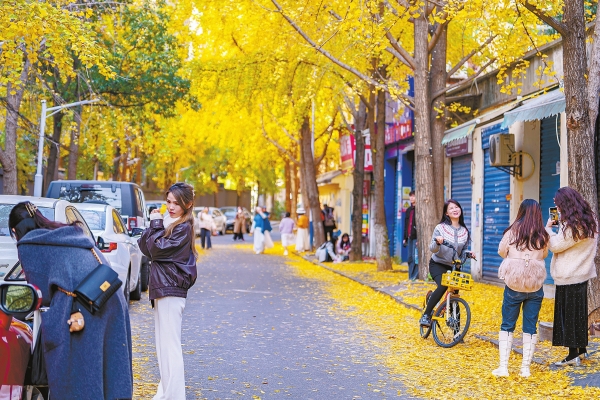 12月3日,长沙市开福区国庆新村迎来银杏最佳观赏期,金黄的叶片在冬日阳光下熠熠生辉,吸引众多游客前来拍照打卡。