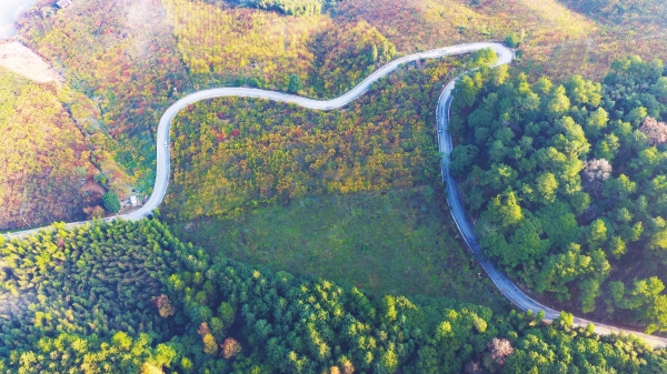 12月14日,靖州苗族侗族自治县,农村公路如玉带般蜿蜒于云雾青山间,通往排牙山国家森林公园。近年来,当地以“四好农村路”建设为抓手,将交通基础设施与乡村旅游深度融合,助力乡村振兴。