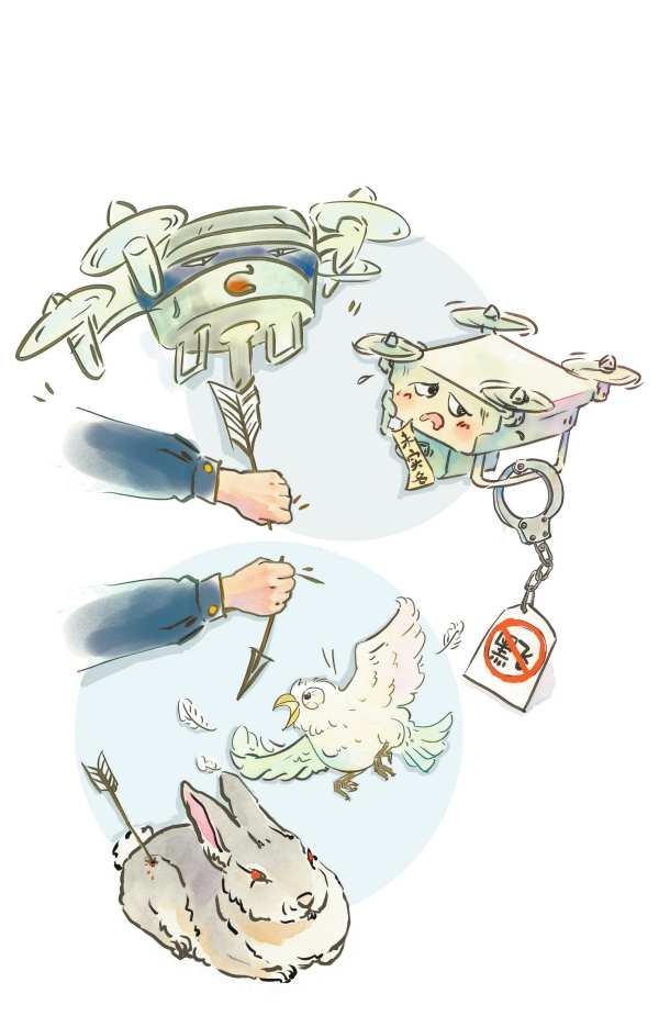 针对新型狩猎方式,江西师范大学政法学院教师罗金寿建议,修订野生动物保护法实施细则,将“使用无人机等智能航空器进行追踪、驱赶、骚扰、猎杀野生动物”明确列入“禁止使用的狩猎工具和方法”。