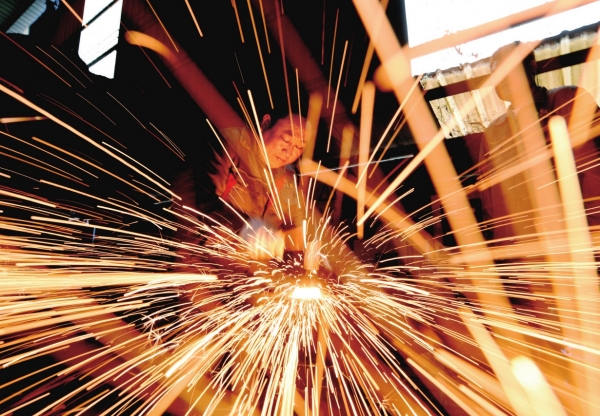12月21日,嘉禾县刀王刀具有限公司,工人在锻打手工刀具。 临近年底,该县各企业开足马力赶制订单产品,确保完成全年生产任务。
