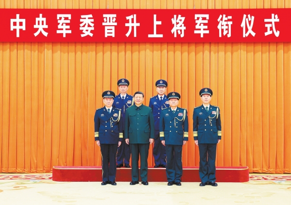 习近平颁发命令状并向晋衔的军官表示祝贺