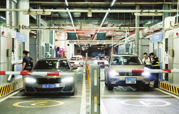 12月23日零时,备受期待的“粤车南下”入境香港市区政策正式实施,粤港澳大湾区融合发展再添新动能。图为首批通关车主在“一站式”通道办理通关手续。