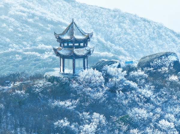 12月25日,浏阳市大围山国家森林公园银装素裹,景美如画。受冷空气影响,该景区自24日起迎来降雪天气,目前山顶已出现积雪并形成雾凇景观,宛如冰雪梦境。