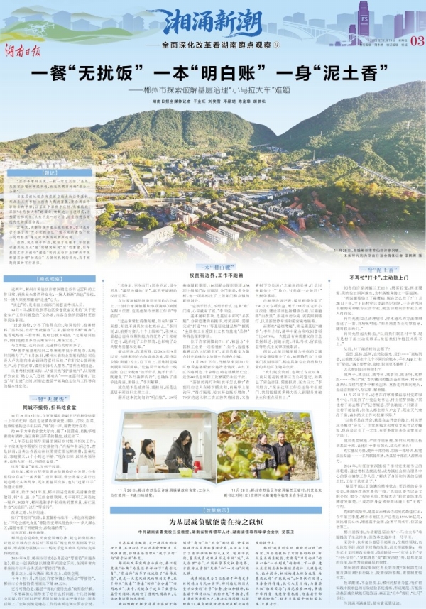 为了生动呈现我省改革取得的突出成就和发展经验,12月初以来,湖南日报全媒体重磅推出“湘涌新潮·全面深化改革看湖南蹲点观察”系列报道。湖南日报社党组、编委会领导牵头,组成14个报道小组,分赴14个市州一线“蹲点”,捕捉鲜活案例,倾听基层声音。