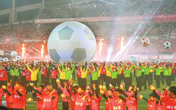 12月21日晚,株洲市体育中心,一场特别的开场秀温暖全场——公安交警、消防应急、环卫保洁、医疗救援等近千名幕后工作人员受邀走上球场,与球员、球迷共同狂欢。 |