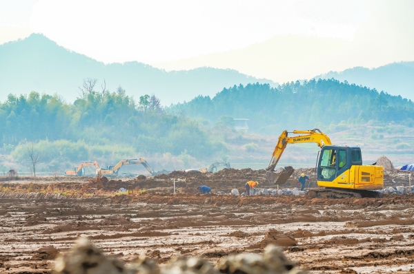12月27日,双峰县走马街镇白杨村高标准农田项目建设区,多台工程机械与工人协同开展场地整理、塘坝加固作业。入冬以来,该县利用冬闲时节全面推进高标准农田建设,通过田块整治、水利配套等措施提升耕地质量,为粮食稳产增收夯实基础。
