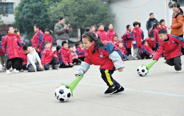2025年12月30日,洞口县文昌街道第一小学,学生开展趣味运动,迎接2026年的到来。滕治中 摄(湖南图片库)
