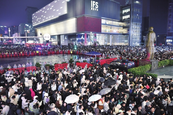 2026年1月1日零时,长沙市黄兴南路步行街司门口,市民和游客齐聚欢呼,共同迎接新年的到来。湖南日报全媒体记者 童迪 摄