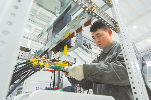 娄底经开区湖南星源电气有限公司,工人正在安装配电箱。