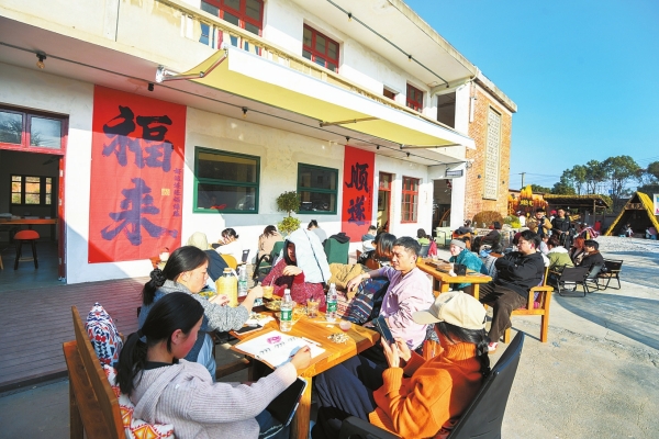 1月11日,娄底市娄星区大埠桥街道大埠桥村,市民和游客在当地“农家乐”游玩。吴永华 摄(湖南图片库)