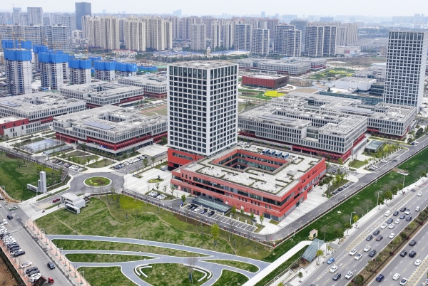 从高空俯视,岳麓山实验室集聚区的17栋大楼如星辰落子,疏密有致地铺展于沃野之上。