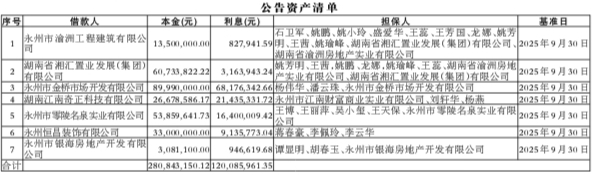永州农村商业银行股份有限公司与中国东方资产管理股份有限公司湖南省分公司于2025年12月18日签订《债权转让协议》,永州农村商业银行股份有限公司将其对本公告附件“公告资产清单”所列借款人及其担保人享有的主债权、担保合同项下的全部权利及相关附属权益,依法转让给中国东方资产管理股份有限公司湖南省分公司。永州农村商业银行股份有限公司特公告通知各借款人、担保人以及因各种原因发生更名、改制、歇业、吊销营业执照或丧失民事主体资格等情况的相关承债主体或清算主体。