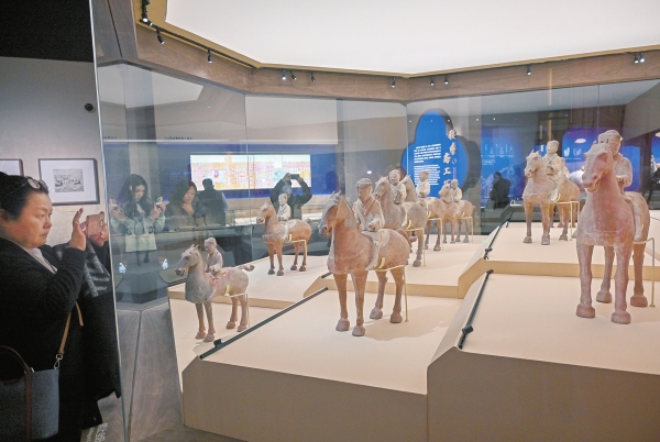 在丙午马年新春到来之际,中国国家博物馆在甘肃省博物馆、甘肃简牍博物馆、秦始皇帝陵博物院、陕西省考古研究院(陕西考古博物馆)、青州市博物馆、绵阳市博物馆的支持下,推出“跃马扬鞭——马年新春文化展”。展览将于1月30日开展,遴选与马相关的精品文物120余件/套。图为展出的彩绘陶兵马俑(1月29日摄)。