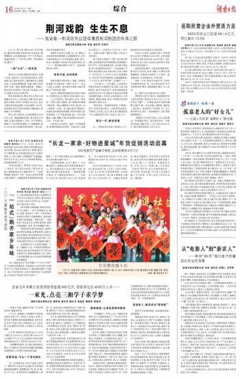 湖南日报2月2日讯(全媒体记者 张福芳 彭诗思)2月1日,“长龙一家亲·好物进星城”2026年爱心帮扶年货促销活动在长沙启幕,来自龙山县的百合、脐橙、腊肉、手工糍粑等200多款精选特色农产品集中亮相,以“爱心帮扶+消费惠民”双重暖意,续写长沙与龙山32年对口帮扶深情厚谊。活动将持续到2月7日。