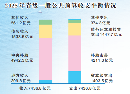 报告显示,2025年,全省一般公共预算地方收入完成3507.6亿元,增长1.7%,剔除加力实施高新技术企业、中小微企业减税降费政策等特殊因素影响,同口径增长2.5%。2026年,全省一般公共预算地方收入按增长1.5%左右安排,支出聚焦“开局八好”任务,着力扩内需、优结构、增动能、惠民生。