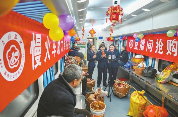 2月6日清晨,怀化开往澧县北的7266次公益慢火车内人声鼎沸,一场别开生面的“年货节”温暖启幕。今年春运期间,广铁集团全面升级湘西公益慢火车,以“一车一主题”模式打造服务民生的“慢游湘楚大地”移动主题列车车厢,温暖回家路,助力乡村振兴。